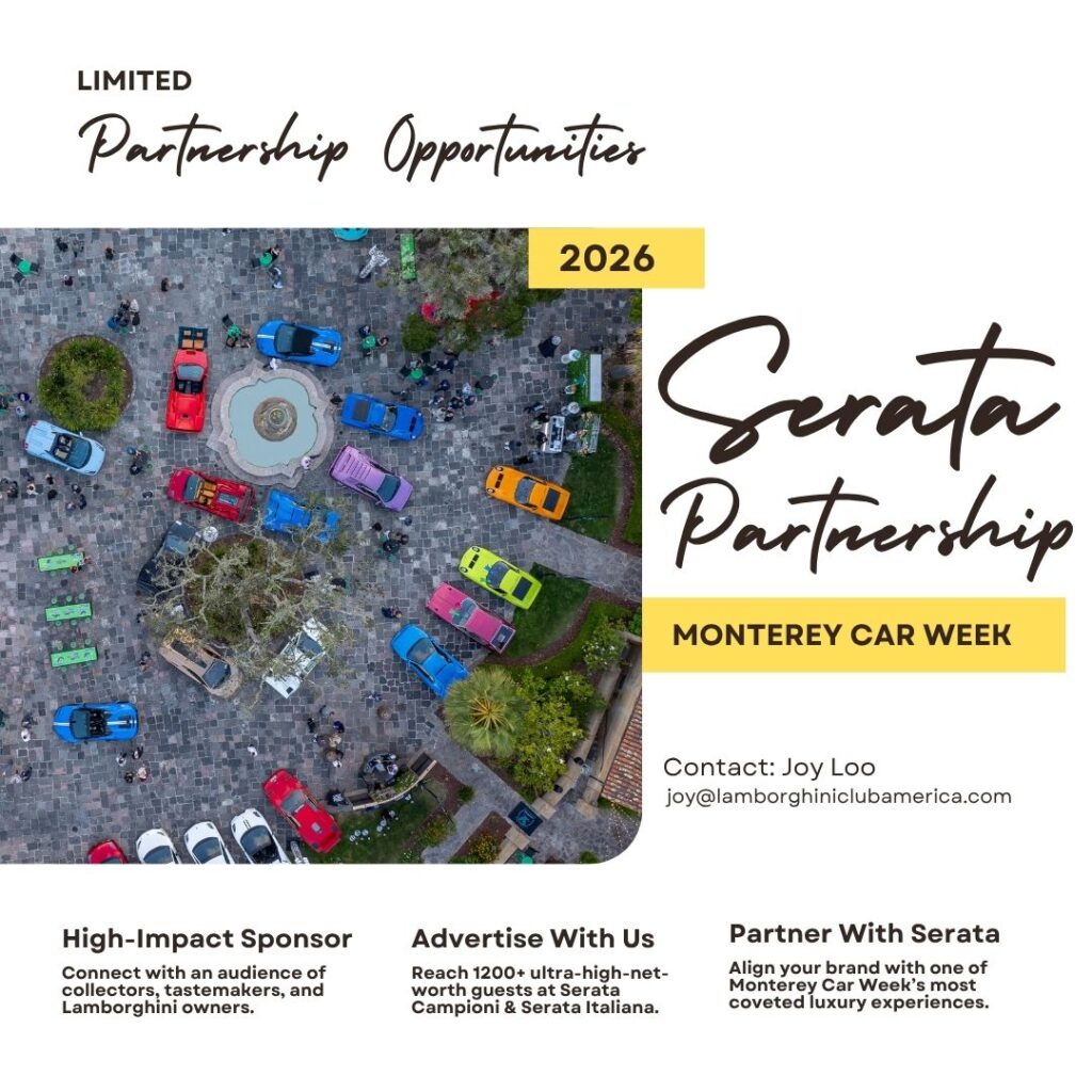Join Lamborghini Club USA for exclusive high-impact sponsorships during Monterey Car Week.